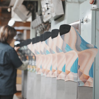 「機械と手作業の融合による国産ブランド」 国内の自社工場にて、すべてを一貫生産しています。 厳しい品質基準と職人が創り出す商品は、日々の私たちの取り組みの結晶です。 手作業が多い靴下製造において、私たちはお客様に高品質な商品をお届けしたい。 満足してもらえる商品づくりを作りたいと常に考えております。 これからも気持ちよく、楽しく、履いてもらえる製造に向けて日々努力していきます。