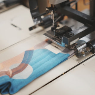 機械で編まれた靴下は、先が開いています。これをつま先縫い合せ専用のミシンで縫い合せることで靴下の形が完成します。